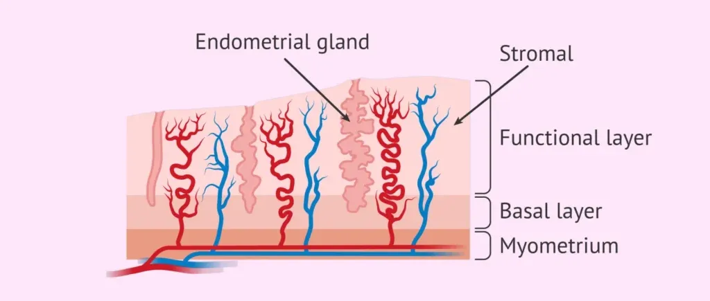 Section titled “1.子宫内膜如何变化?”子宫内膜由基底层和功能层组成。基底层负责在每个周期产生一个新的功能层,因为如果没有发生妊娠,该功能层每个月都会再生。