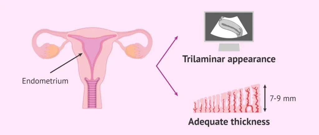 理想情况下,为了在IVF周期后进行胚胎移植,子宫内膜的厚度应达到约 8 毫米,并通过超声波呈现三层状。