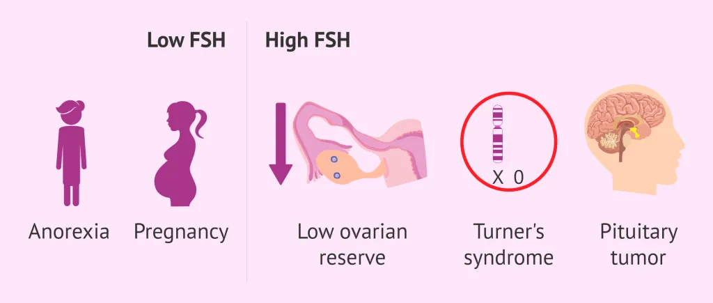 对于女性来说,由于卵巢储备功能低,甚至在绝经后,FSH 激素可能会很高。此外,服用避孕药、特纳氏综合症或垂体肿瘤也可引起FSH激素浓度升高。